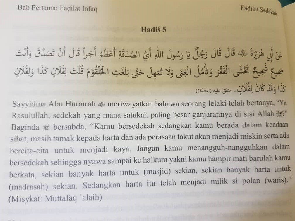” Sahaja aku Bersedekah Waqaf dengan Jumlah Sumbangan yang tersebut kerana Allah Ta’ala “